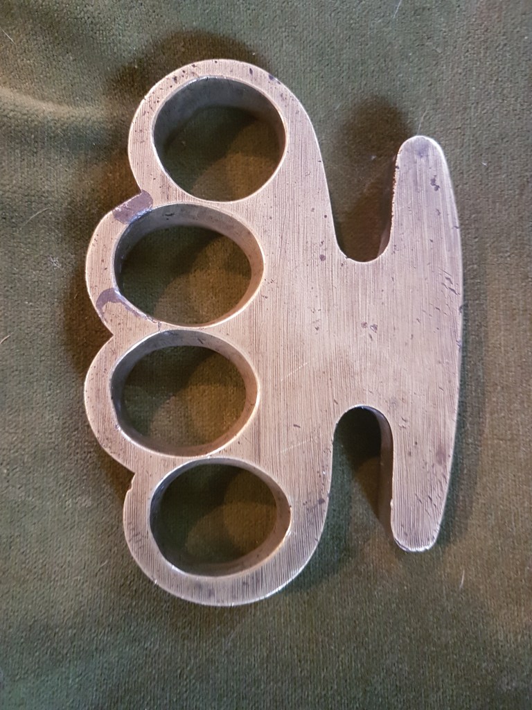 Like most examples of civilian knuckledusters, these bear no maker’s mark. They could have been made by any number of sporting goods companies and sold alongside shotguns, rifles and shooting sticks in a range of hardware and country stores or even mail-order catalogues. They were common.