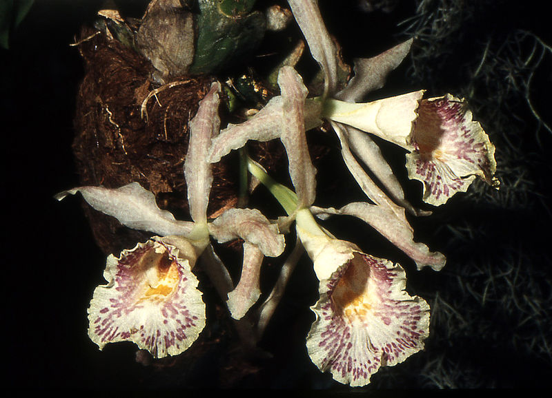Luckily I happened to have it on my phone when I met Mike, and he was able to identify it as Stanhopea, probably S. tigrina. It’s from Mexico and appears to have been first described in 1838. Here’s one today: