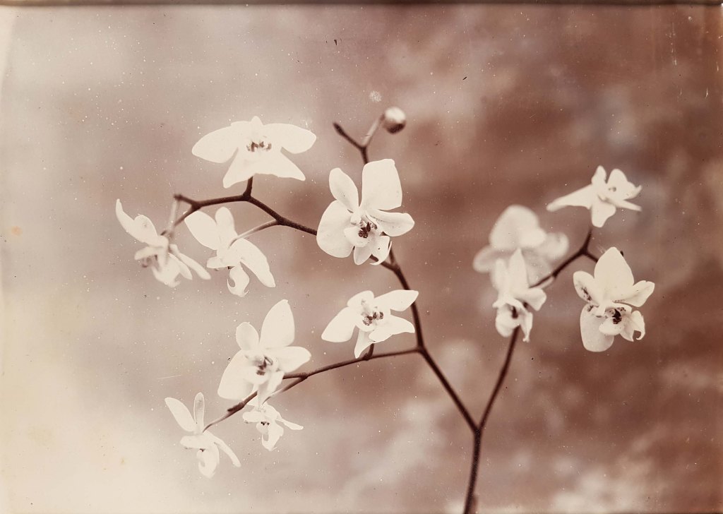 It got me thinking of Ellen Willmott’s orchids. We don’t know too much about them really, but I recently turned up a few photographs to join the one, precious colour autochrome we already knew about, and I cheekily wondered whether the experts at Kew might be able to help identify at least some of those we now have pictures of.