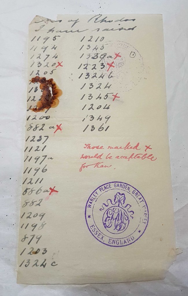 Sometimes they were, in which case he was keen to have examples for the Botanic Gardens – here is her suggested list of rhododendron donations from her latest haul, probably courtesy of Ernest Wilson, and marked by Bean with the ones he wants: