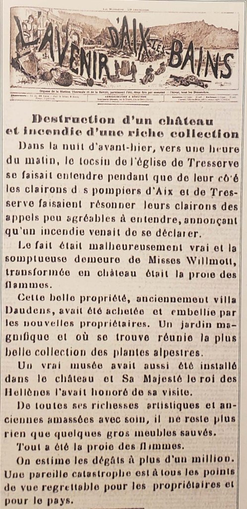 We do have the next-day report from the local paper (found by Willmott-scholar Genevieve Frieh Geraud, who goes into the incident at length in her book La Mairie de Tresserve):