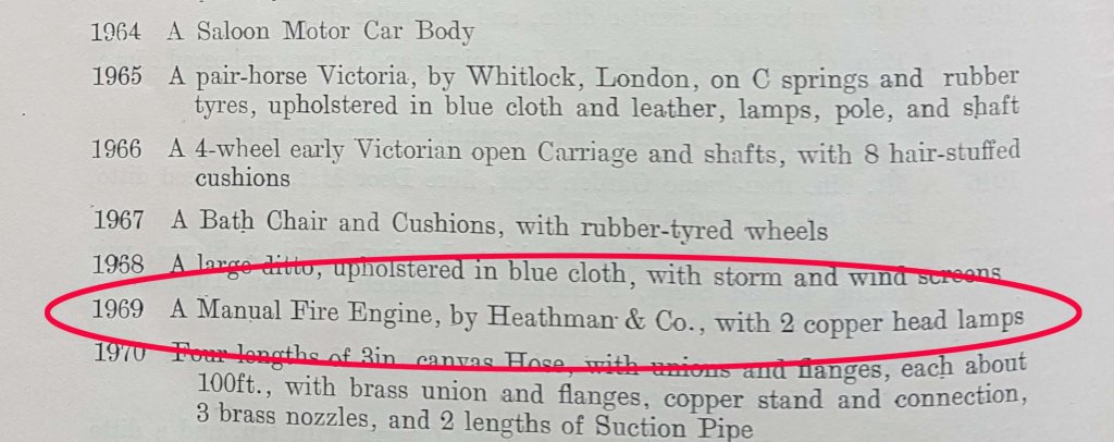 Lot #1970, if you can see it underneath the red circling, is for the attachments, including 400ft worth of hosepipe and suction pipes, presumably for drawing water from a nearby pond or dipping pond which, of course, Ellen had dotted around the estate: