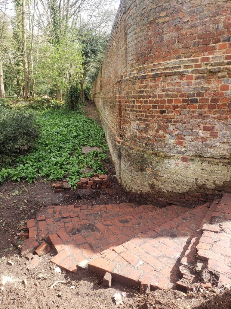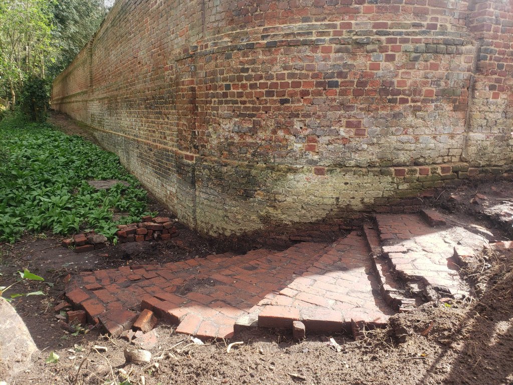 Yesterday, though – a new discovery! They’ve dug out the soil to reveal some wonderful brick steps: