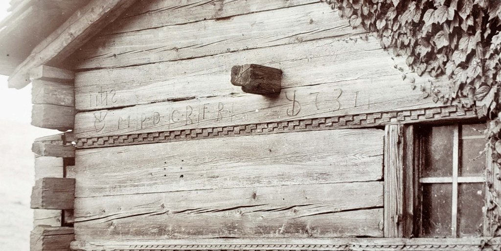 Quite a few of the curious pieces of furniture Ellen brought back from Switzerland, Germany and eastern France have odd legends carved into them and I confess I don’t know what any of them means, but I think it’s folk-art rather than Ellen’s own additions. If you’d like to have a go at translating it here’s a closeup:
